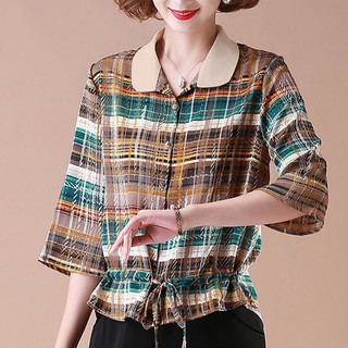 GOTI - 50-80KG Áo Trung Niên Nữ Cao Cấp Cổ Bẻ Phối Nút Rút Eo Cao Cấp Tay Lỡ Đẹp 3A07 3A15
