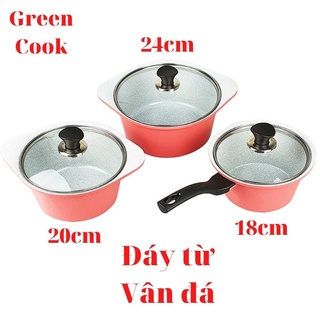 Nồi đúc Green Cook chống dính đáy từ men đá xanh ngọc công nghệ Hàn Quốc (18-20-24cm) - Hàng chính hãng