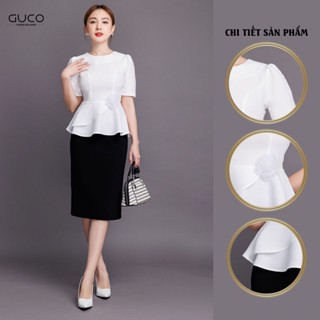 Áo kiểu peplum kết hoa A263 GUCO màu trắng