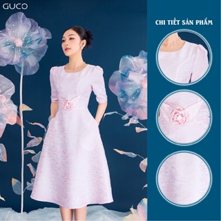 Đầm ren chữ A cổ tròn 3947 GUCO Kem