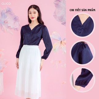 Áo kiểu cổ tim tay dài A297 GUCO Xanh đen