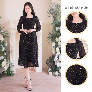 Đầm Xòe Bi Kim Sa Tay Dài - Đen 4070