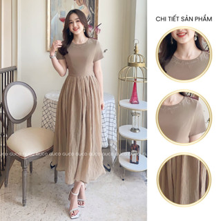 Đầm xòe nữ cổ tròn xếp ly - Tím 3972 Guco