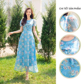 Đầm maxi hoa cổ tròn bèo vai 3975