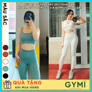 Set bộ đồ tập gym yoga nữ GYMI SET16 gồm áo bra cổ V hoặc cổ U và quần legging thể thao chất liệu dệt thun gân