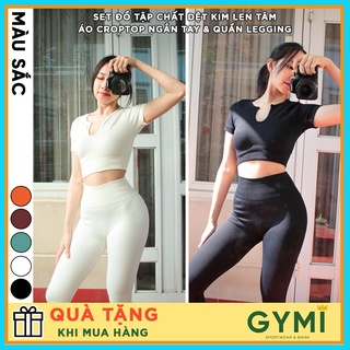 Set bộ đồ tập gym yoga nữ GYMI SET15 gồm áo croptop ngắn tay và quần legging dài thể thao chất dệt thun gân cao cấp