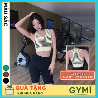 Áo bra tập gym yoga nữ GYMI AL41 dáng áo ba lỗ thể thao kèm mút ngực cố định vân kẻ ngang nâng đỡ thấm mồ hôi