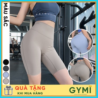 Quần tập gym yoga nữ chun mông GYMI QS11 dáng đùi ngố lửng biker cạp cao nâng mông chất dệt kim co giãn