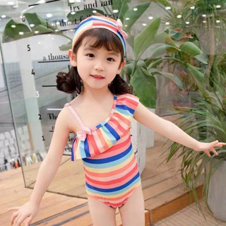 Đồ Bơi Cho Bé Gái Liền Thân Habi Fashion HB2304 Họa Tiết Cầu Vồng Tặng Kèm Mũ, Chất Liệu Co Giãn Cho Bé Từ 9-25kg