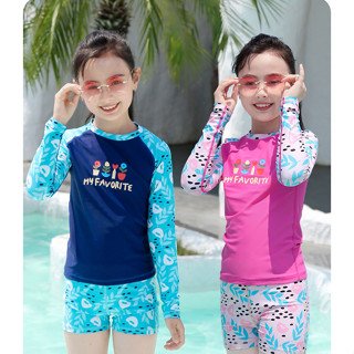 Đồ Bơi Cho Bé Gái Dài Tay Habi Fashion HB2311 Họa Tiết Favorite Thiết Kế Dễ Thương, Chất Liệu Co Giãn Cho Bé Từ 18-52kg
