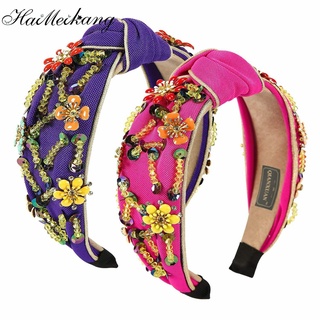 Băng đô cài tóc Haimeikang vành rộng 2 lớp bằng hợp kim đính đá nhiều màu thời trang Âu Mỹ sáng tạo cho nữ