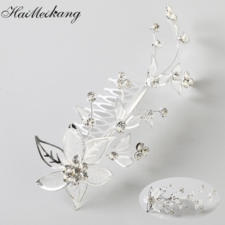 Cài tóc HAIMEIKANG kim loại thiết kế hình hoa đính đá và ngọc trai nhân tạo cho cô dâu