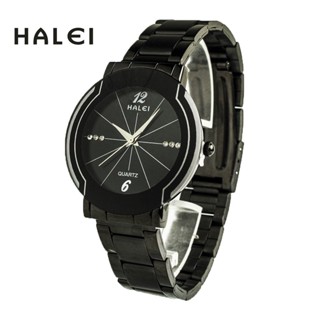 Đồng Hồ Nam Nữ Halei 003 Mặt Đen Dây Da Kim Loại Chính Hãng