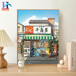 Set tranh tô màu số hóa DIY HAMLET hình cửa hàng đường phố kiến trúc Nhật Bản 40x50cm dành cho trang trí