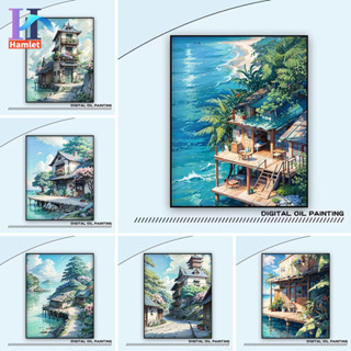 Bộ tranh sơn dầu acrylic Hamlet vải canvas tô màu theo số hình kiến trúc cảnh quan trang trí nghệ thuật cỡ 40*50cm