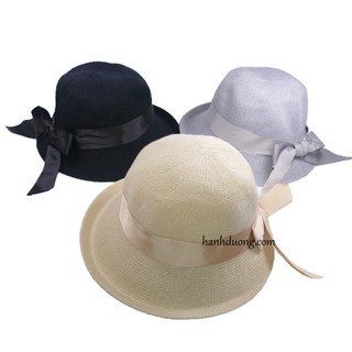 Mũ đẹp nón bo nữ vành rộng 7cm gắn nơ vải cotton oát cao cấp phù hợp cho nữ