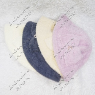 Mũ bucket vành cụp lông xù hàng quảng châu gắn nơ kèm mặt sắt chữ G, vành rộng 5cm, phía trong có 2 dây rút phía trong