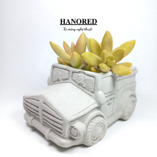 Bộ sưu tập 4 xe ô tô bằng xi măng trồng sen đá, xương rồng, tô tượng HANORED