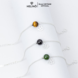 Lắc tay bạc nữ HELINO Lu thống Đá Phong Thủy gắn charm cỏ bốn lá V11