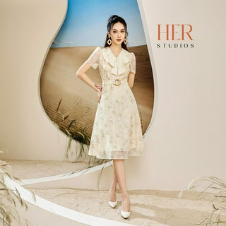 [Mã BMLT100 giảm đến 100K đơn 499K] Váy nữ dáng dài Her thiết kế cổ bẻ thắt eo nữ tính