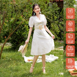 Váy cổ sen hoa nổi trắng CVT ( Không kèm đai )