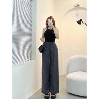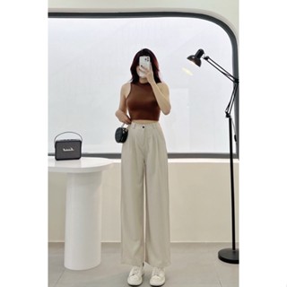 Quần suông nữ HHVINTAGE kiểu lưng cao 1 nút vải cát nhật co giãn Pant B08