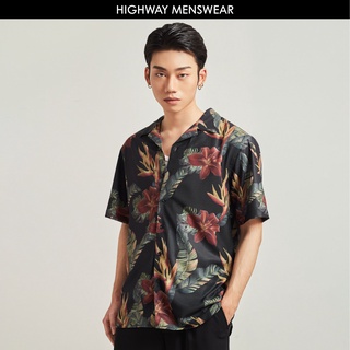 Áo sơ mi ngắn tay nam mềm mịn Highway (Menswear) Pansy Đen Hoa