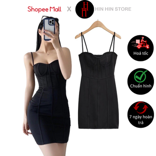 Đầm hai dây HDT278 ôm body ngắn cúp ngực màu đen Hỉn Hỉn Store
