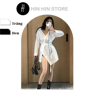 Áo sơ mi kiểu tay dài màu trắng & đen HAF48 Hỉn Hỉn Store