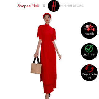 Set bộ áo Dài đỏ truyền thống tay phồng & mấn đính hạt HS116 Hỉn Hỉn Store