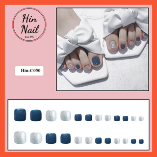 Móng Chân Giả Hin Nail màu xanh , trắng bạc ánh nhũ