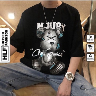 Áo phông nam HLFashion tay lỡ unisex form rộng Gấu NJURY thun oversize nam nữ ulzzang
