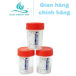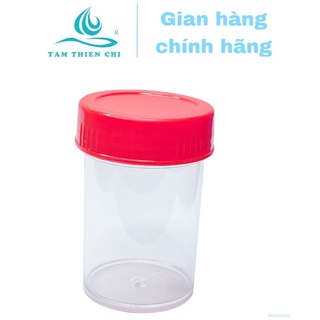Lọ nhựa đựng mẫu có nắp màu đỏ có nhãn Hồng Thiện Mỹ