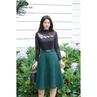 Đầm nữ thiết kế Hong Vic ren xanh cây cổ sen DL553