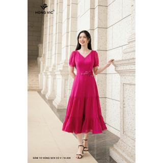 Đầm nữ thiết kế Hong Vic hồng đỗ dập ly DL618