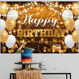 Banner Chúc Mừng Sinh Nhật Thứ 40 * 200cm 18th 21st 30th 40th 50th 60th Bằng Polyester Màu Vàng Đen Và Đen