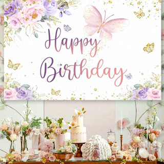 Dây Treo Trang Trí Nền Chụp Ảnh Sinh Nhật 59 * 39 Inch Hình Bướm / Hoa Tím / Hồng Xinh Xắn