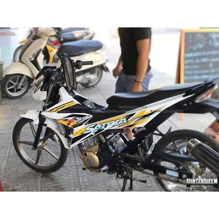 Tem rời dán xe Raider trắng. Satria F150 cam đen. Decal cao cấp, không bay màu