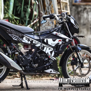 Tem rời Cao cấp in UV ép nhiệt, Satria FI mẫu 2022 mới nhất. Dán xe phía trước màu đen - phía sau xanh