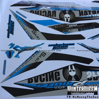 Tem rời dán xe Raider Xăng Cơ màu xanh ngọc. Decal cao cấp không bay màu. Chủ đề Spartan