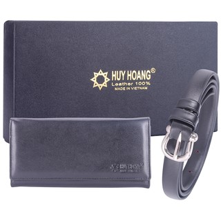 Bộ Bóp & Dây thắt lưng da bò màu đen Huy Hoàng HP5110-HP3120
