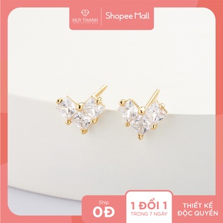 Bông Tai Vàng Vàng Hình Chữ T Thời Trang Gắn Đá CZ Cao Cấp Vàng Tây 14K BTAM116 Huy Thanh Jewelry