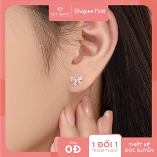 Bông Tai Nữ Vàng 14K Họa Tiết Hình Nơ Xinh Xắn Đính Đá CZ Cao Cấp Lấp Lánh BT431 Huy Thanh Jewelry