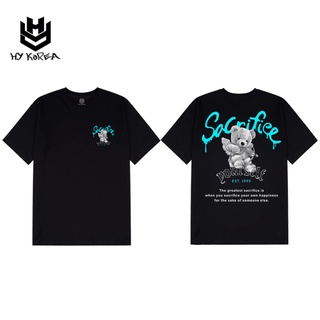 Áo Phông Tay Lỡ Unisex HY Korea Form Rộng Cotton 100 In Hình Gấu Sacrifiee 568.