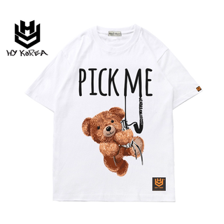 Áo thun HY KOREA tay ngắn form rộng nam nữ in hình Gấu Pick Me 511