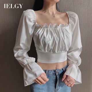 IELGY Áo Sơ Mi Cổ Vuông Hở Xương Quai Xanh Phong Cách Hàn Quốc Cho Nữ