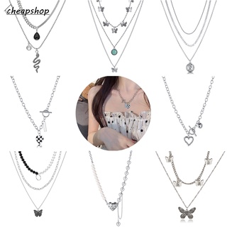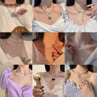 iF YOU Vòng cổ Y2K mặt hình trái tim và bướm mạ bạc đính đá zircon thời trang cho nữ