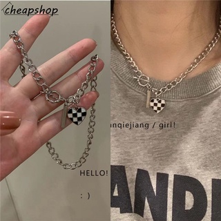 iF YOU Vòng cổ mặt trái tim caro trắng đen phong cách cổ điển