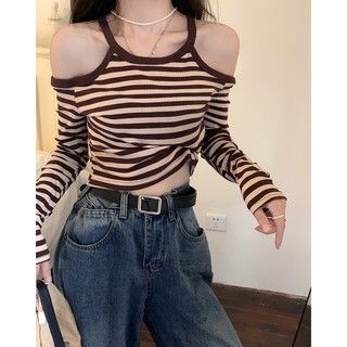 Áo thun hở vai kẻ sọc ngang thời trang Hàn Quốc