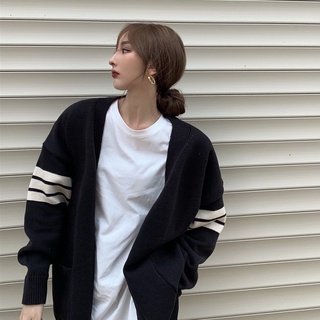 Áo Khoác Cardigan Dệt Kim Dáng Rộng Cổ Chữ V Kẻ Sọc Kiểu Hàn Quốc